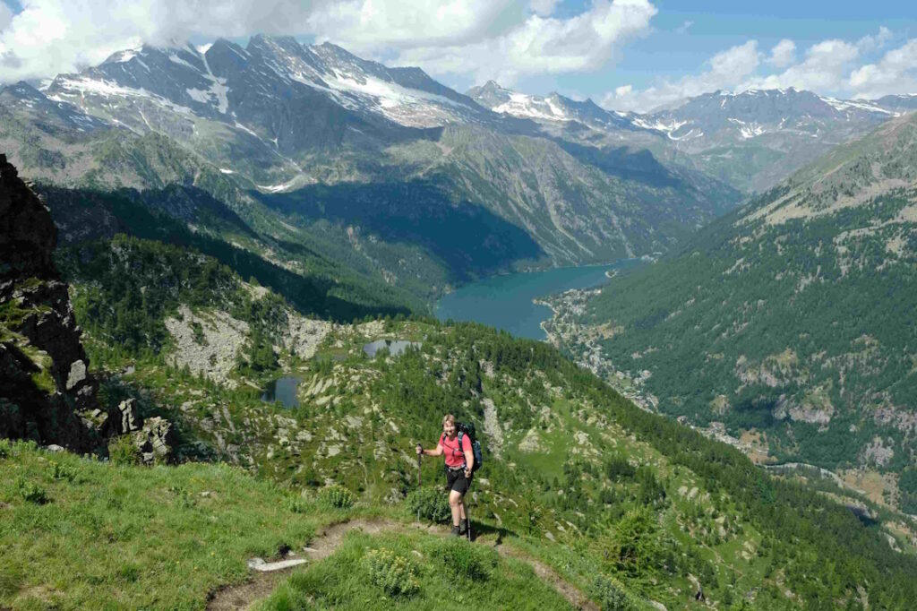 Mijn man en ik hebben dit jaar een deel van een lange afstandswandeling in de Italiaanse Westalpen gelopen. Met 10 kilo op je rug dagelijks zo’n 1000 hoogtemeters omhoog en weer omlaag naar de volgende slaapplaats en dat 16 dagen lang. Dan denk je wel 3 keer na wat je meeneemt en of dat extra T-shirt in je rugzak echt wel nodig is. Maar hebben altijd een trui, regenjas, voldoende eten en water (zo’n half liter flesje is echt niet genoeg, denk meer aan 2-3 liter…..) en soms zelfs muts en handschoenen mee in de bergen- ook al is het 25 graden en blauwe hemel als je op pad gaat.