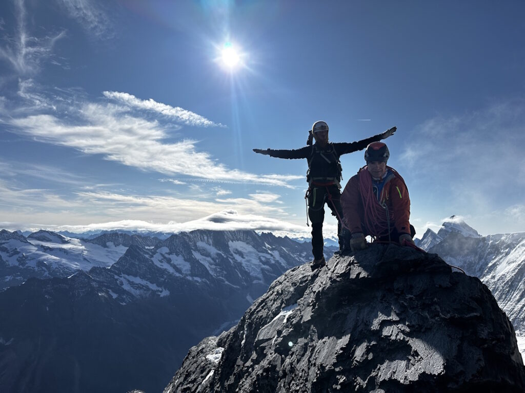 W: Herkenbaar. De fysieke uitdaging en het feit dat je meer kunt dan dat je denkt. Voor iedere expeditie ben ik bang dat ik niet genoeg heb getraind, dat ik niet sterk genoeg ben om de top te halen. Hoewel de top vaak niet het belangrijkste is, soms moet je wel de top halen om weer verder te kunnen. In juli heb ik de Eiger beklommen via de Mitelligi graat waar je na de top doorloopt om vervolgens weer in de volgende hut te komen. Tijdens deze beklimming heb ik heel erg genoten van het rotsklimmen wat soms loodrecht omhoog ging. Daarbij was het extra spannend aangezien het links en rechts van mij ca 2.000 meters naar beneden ging. Omdat ik zo gefocust was op het klimmen, ben ik niet bang geweest. Als je dan weer terug bent in de hut na 9 uur is het even genieten, klaar maken voor de volgende dag, want dan ga je weer op pad voor een volgende top.