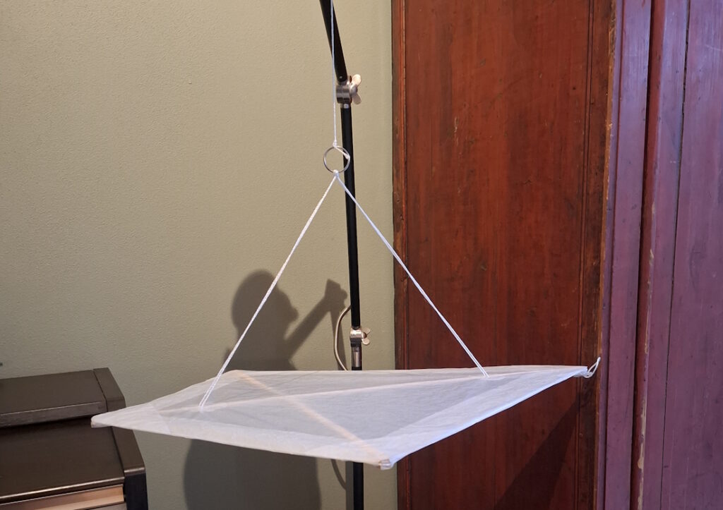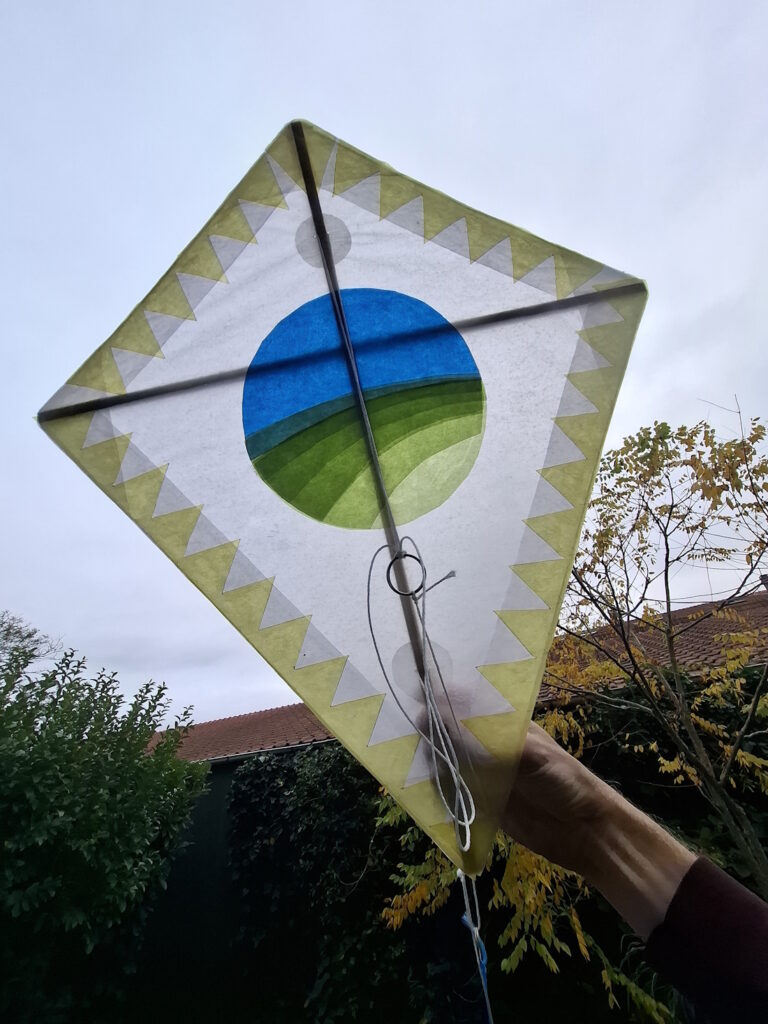 Controleer of het vliegerdoek strak om het touw zit. Het mag natuurlijk niet loskomen in de lucht!